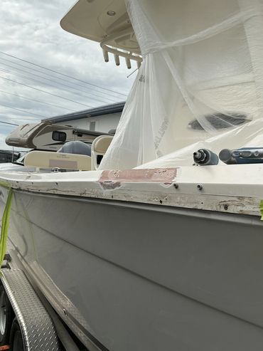 Fiberglas Repair on front cap 5th wheel.
